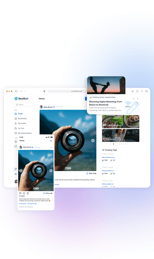 Newrich.com is a learning platform and subscription network built on creator commerce that connects creators with followers who are passionate about building the life of their dreams.