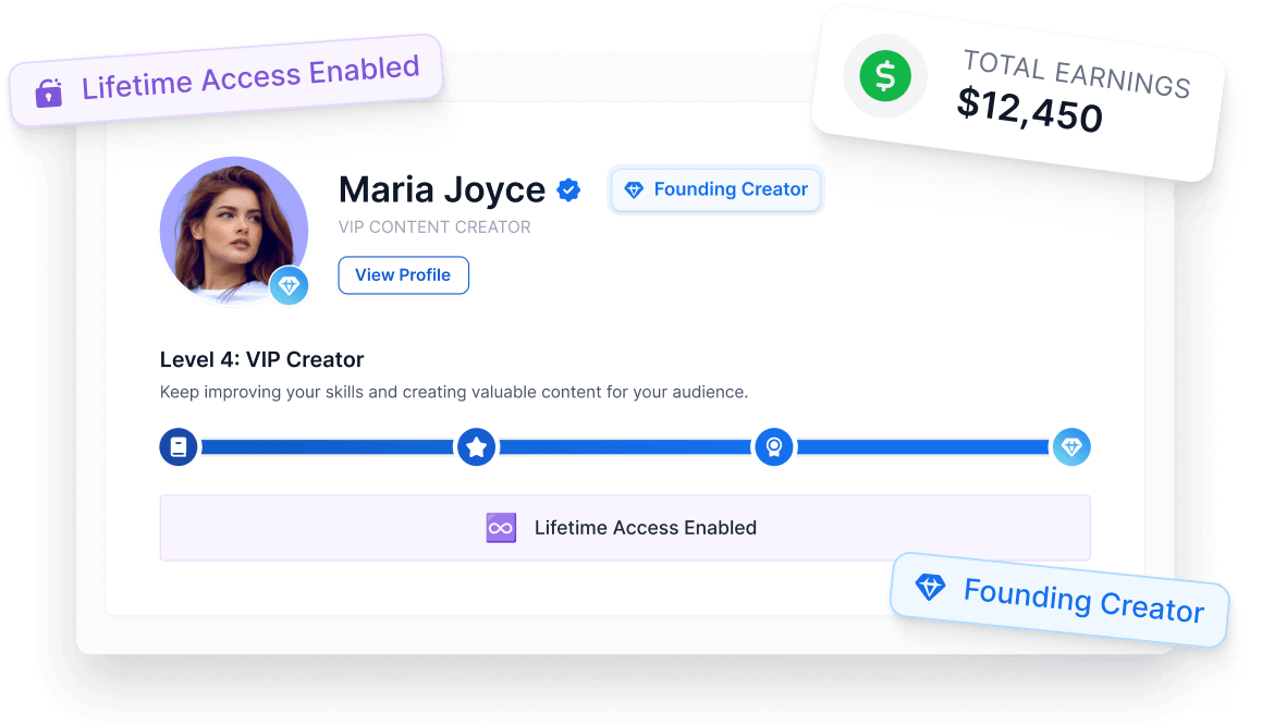 No monthly fees. No renewals. Just lifetime access to the future of creator monetization.
