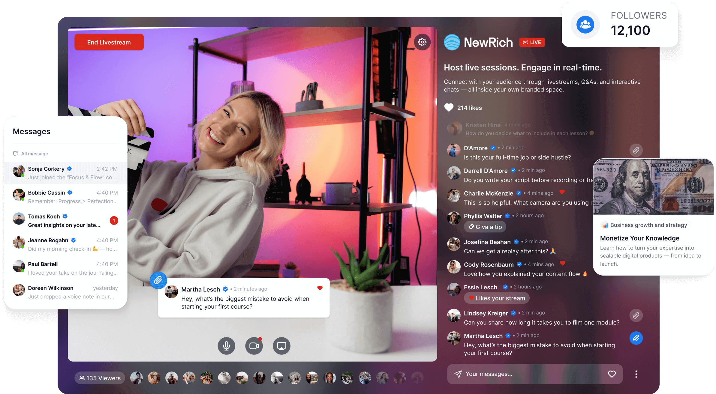 We're a one stop shop for Coaches and Creators to grow an audience, sell their digital content, and run their creator businesses - all from one platform.